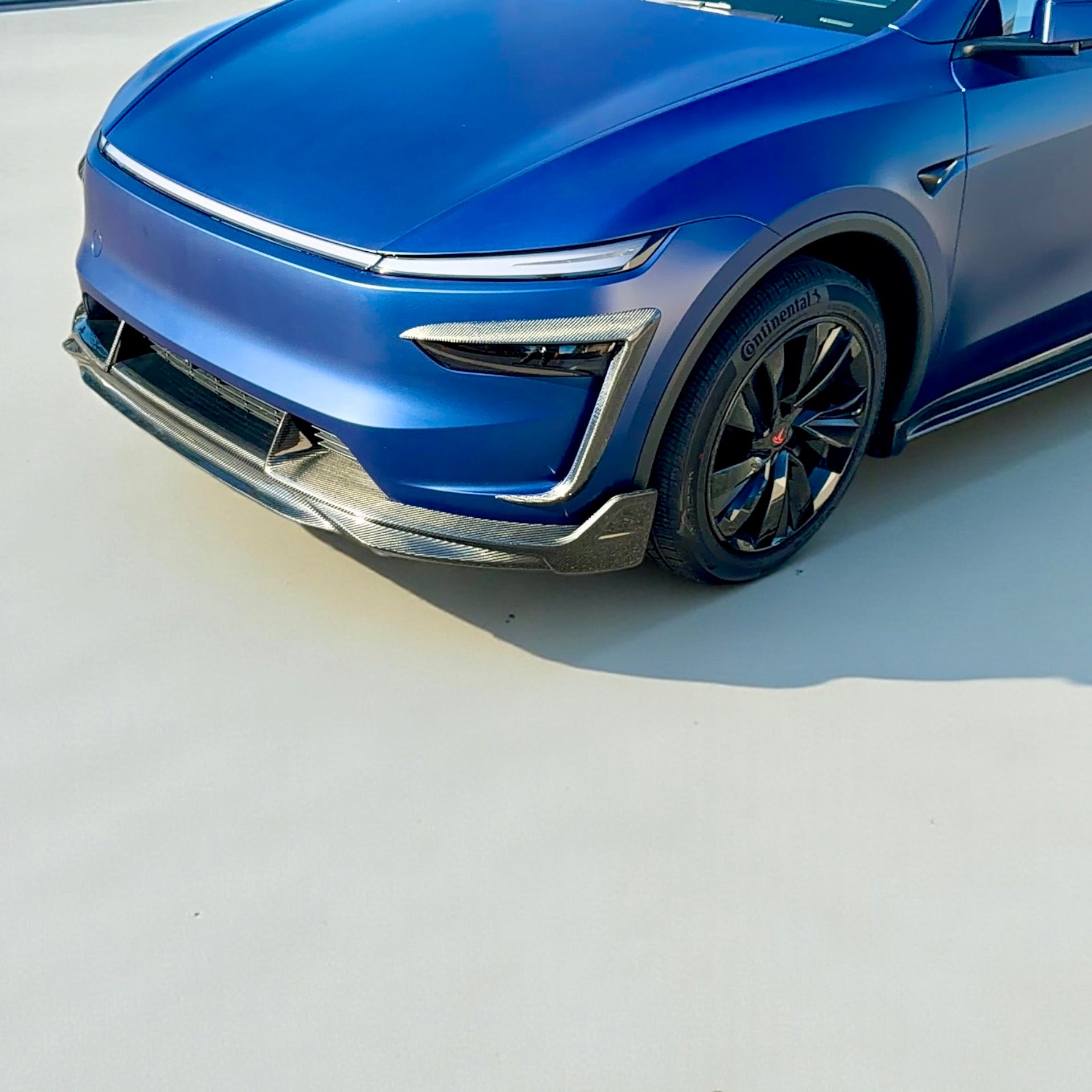 2026+ | Model Y Juniper Refreshed "Plain Weave" (Performance Look) Extended Front Cup Holder & Center Console Full Overlay 2.0 (4 Piece Kit) - Real Dry Molded Carbon Fiber