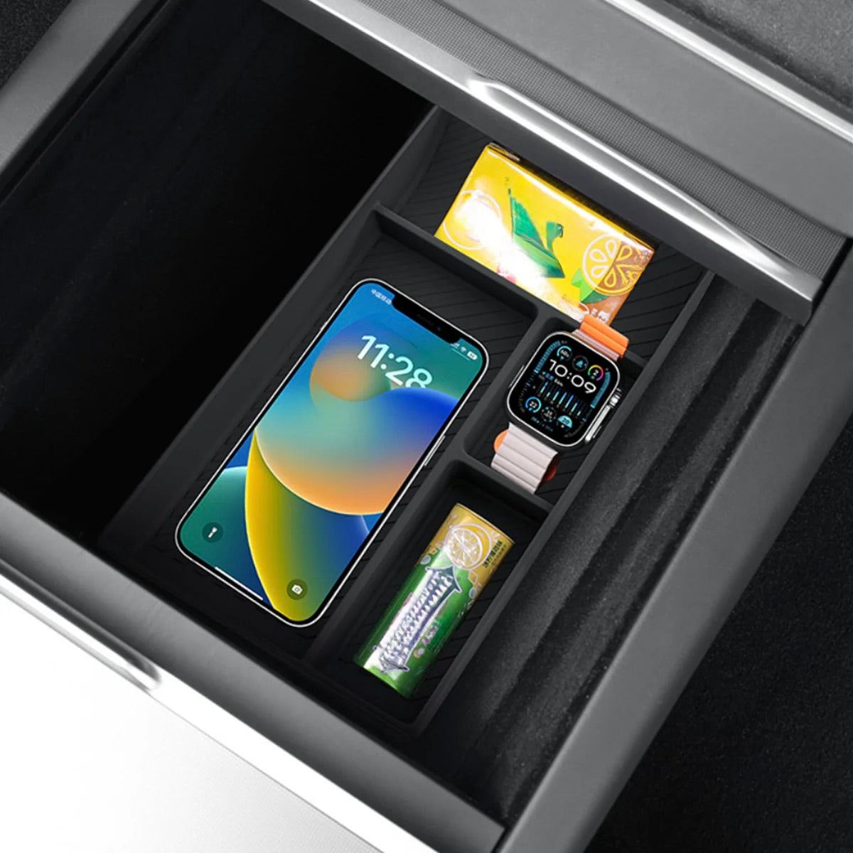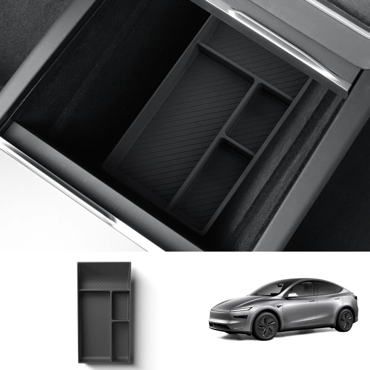 2026+ | Model Y Juniper Refreshed "Plain Weave" (Performance Look) Extended Front Cup Holder & Center Console Full Overlay 2.0 (4 Piece Kit) - Real Dry Molded Carbon Fiber