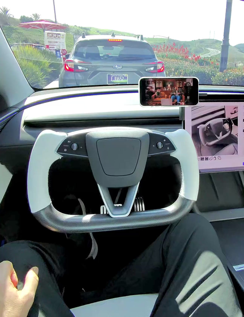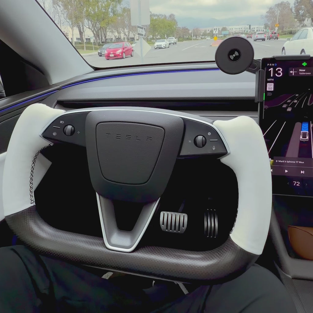 Styled after Tesla’s flagship performance yoke designs and proportioned specifically for the Model Y Juniper for an ergonomic, confident grip.